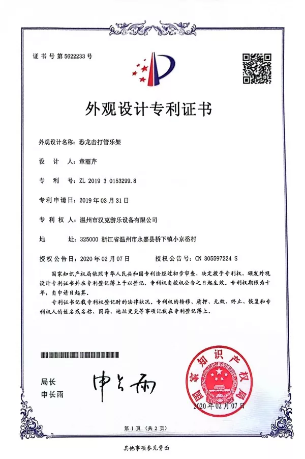 Kích thước của bộ gõ hình khủng long là 120 * 55 * 140cm, bằng hợp kim nhôm + nhựa gia cố sợi thủy tinh + Được làm từ ống mạ kẽm. Màu sắc tổng thể của nó là màu xanh lá cây, với tám ống nhôm có màu sắc khác nhau ở giữa thân. Dưới chân anh có hai electron màu vàng nâng đỡ cơ thể anh. Có một số đồ trang trí màu vàng trên đầu và cổ làm nổi bật đặc điểm của loài khủng long.