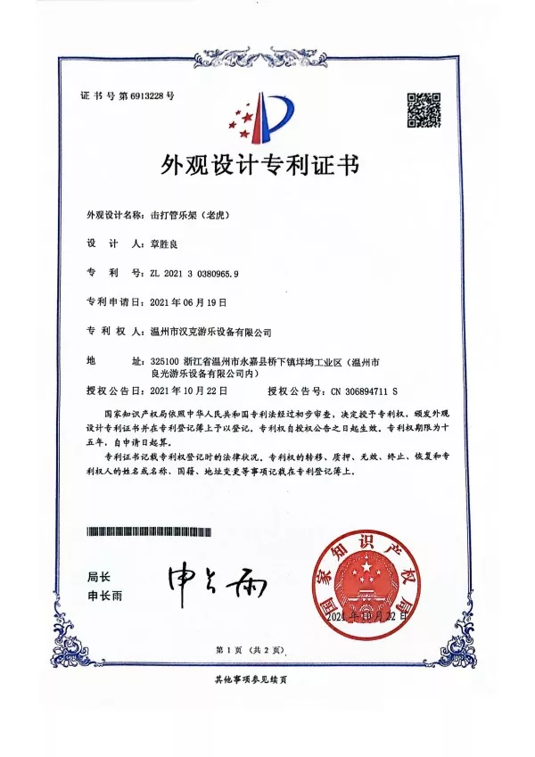 Nhạc cụ gõ hình con hổ bằng kính có chiều cao 105 * 32 * 175 và được làm bằng vật liệu Hợp kim nhôm + Nhựa gia cố sợi thủy tinh + Ống mạ kẽm. Bên trái của ông có một vật tương tự như một tay vịn có thể gắn vào tường hoặc dùng để giúp những đứa trẻ mệt mỏi nghỉ ngơi.